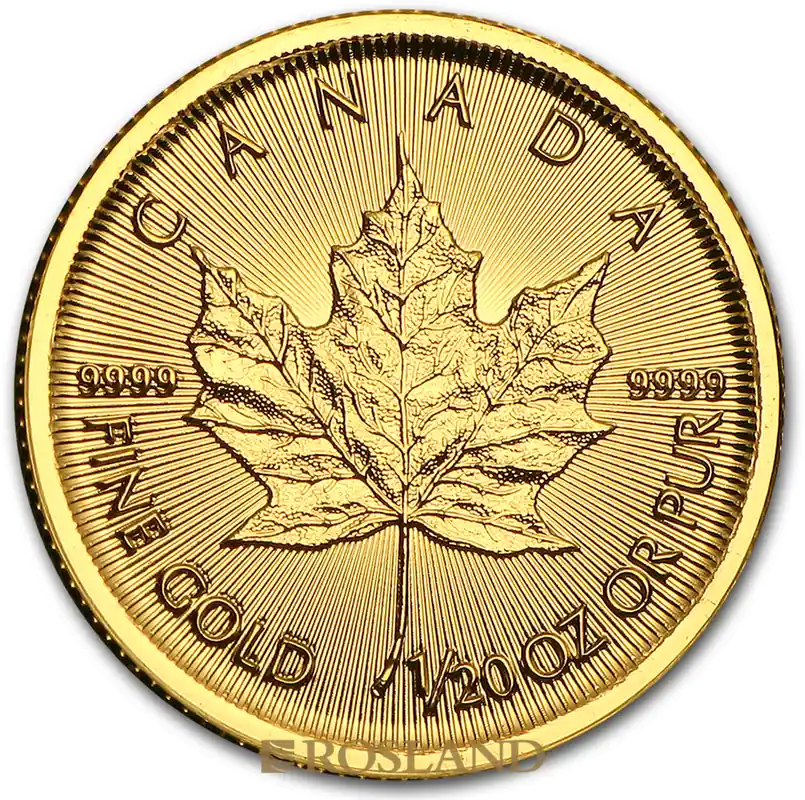 Diese wunderschöne Goldmünze 1/20 Unze Goldmünze Kanada Maple Leaf 2015 mit der Prägequalität Stempelglanz aus dem Jahr 2015 besitzt einen Edelmetallanteil von .9999 Feingold, sowie ein Feingewicht von 1,55g und wird mit einer Stückelung von 1/20 Unze in…