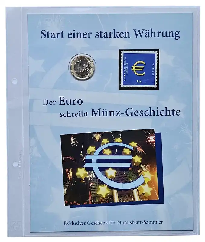 Start » Euromünzen » 1 Euro 2002 – Der Euro schreibt Münz – Geschichte Numisbrief Deutsche Post Meistverkauft