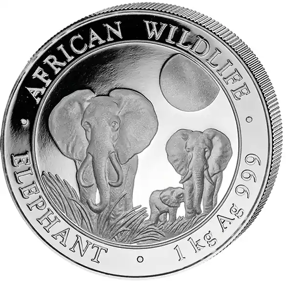Herkunftsland:SomaliaHersteller:Bayerisches Hauptmünzamt MünchenSerie:Somalia ElefantStückelung:1 KilogrammFeingewicht:1.000 GrammFeinheit:999/1.000Nennwert:2.000 ShillingPrägejahr:2014Durchmesser:100,00 mmErhaltung:prägefrisch / NeuwareVerpackung:Münzkapsel