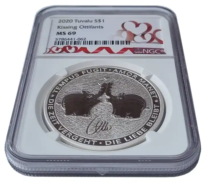 1 Oz Silber Ottifanten 2020 NGC MS 69 – Küssende Elefanten Silbermünze Tuvalu