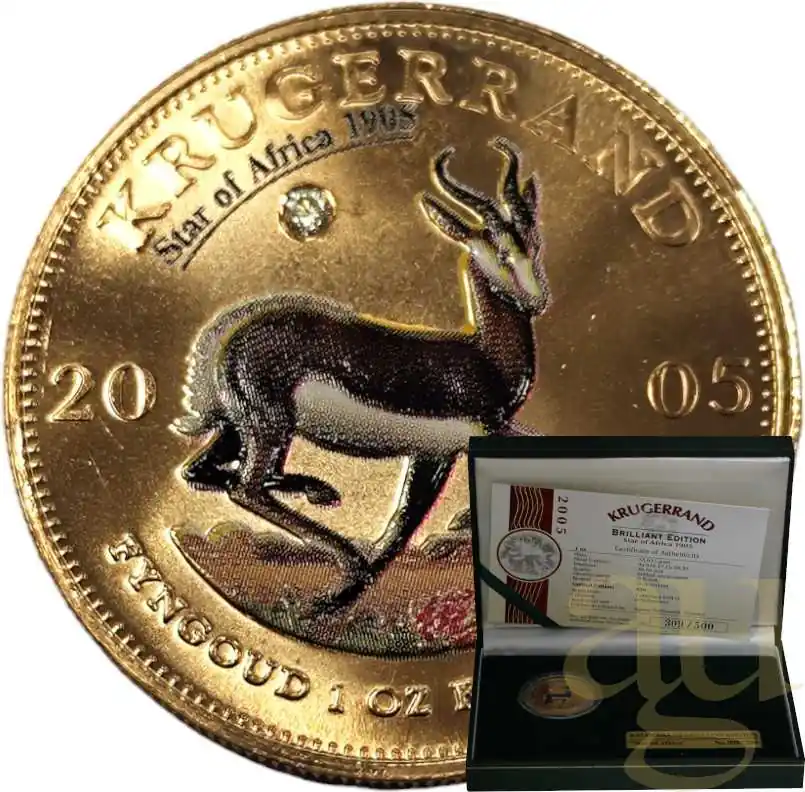 Herkunftsland:SüdafrikaHersteller:Rand RefinerySerie:KrügerrandStückelung:1 UnzeBruttogewicht:33,93 GrammFeingewicht:31,1 GrammFeinheit:916/1.000Nennwert:kein NennwertPrägejahr:2005Durchmesser:32,60 mm (max. 32,77)Dicke:2,84 mmErhaltung:prägefrisch / NeuwareVerpackung:einzeln verkapselt, Etui, Zertifikat, UmverpackungAuflage:500 Stück