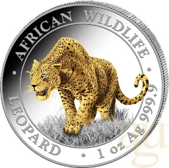 1 Unze Silbermünze Somalia African Wildlife Leopard 2023 – teilvergoldet Nur Heute