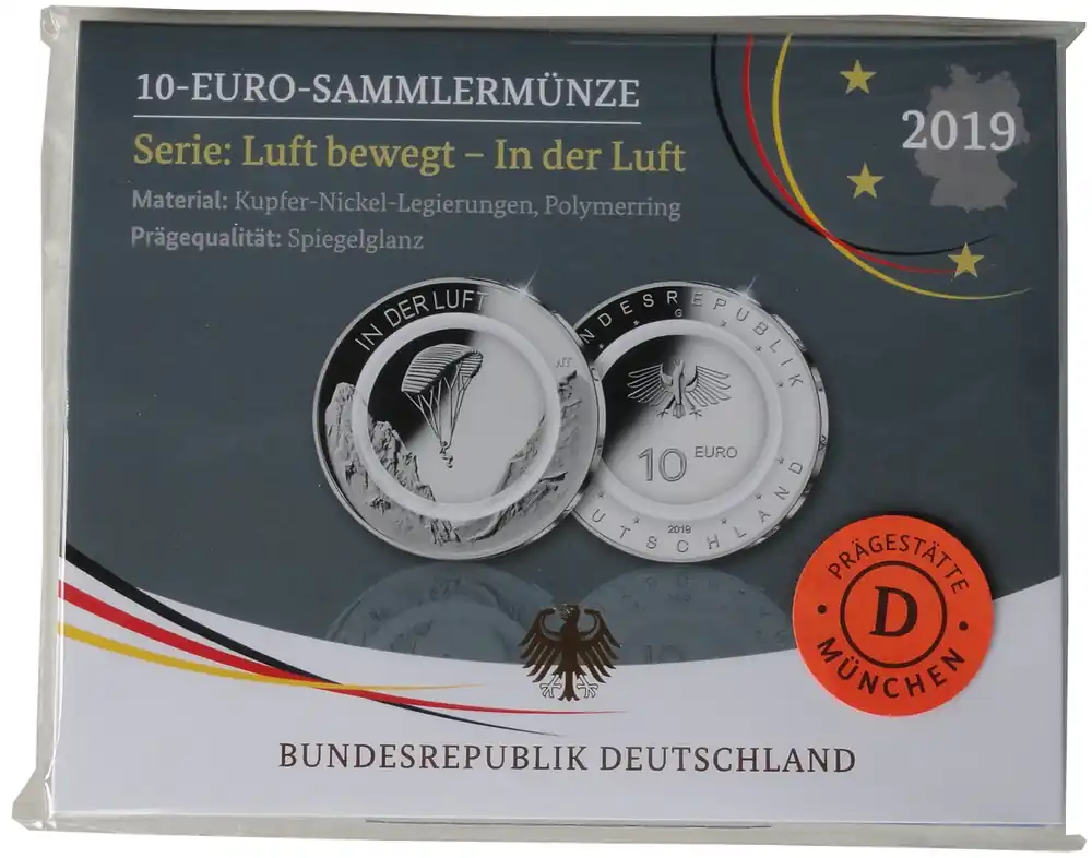 10 Euro in der Luft 2019 D München Polierte Platte mit farblosem Polymerring Letzte Chance