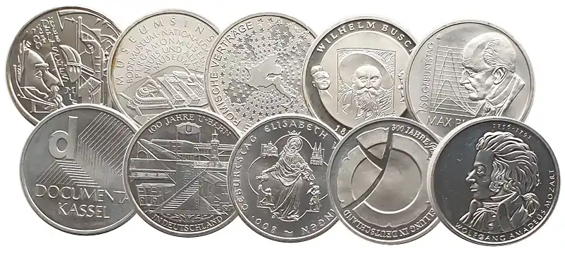 10 x 10 Euro Silber Gedenkmünzen Deutschland ( 2002 – 2010 ) – 18 gr 925/1000 Silber