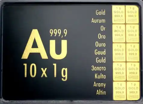Herkunftsland:SchweizHersteller:ValcambiSerie:TafelbarrenFeingewicht:10 GrammFeinheit:999.9/1.000Erhaltung:prägefrisch / NeuwareVerpackung:Tafelbarren verkapselt, Zertifikat