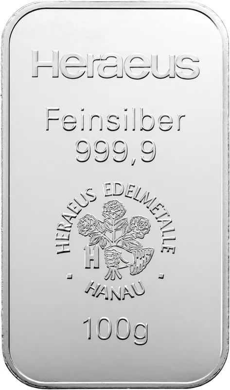 Start » Silber » 100 Gramm Silberbarren Heraeus Geprüft