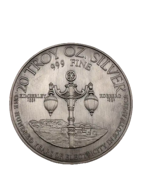 Start » Neuheiten » 100 Jahre Elektrizität in Südafrika 20 Unzen Silbermedaille 1982 Begrenztes Angebot