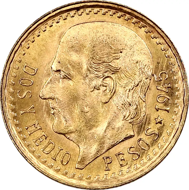 Herkunftsland:MexikoHersteller:Mexican MintSerie:Mexiko PesosFeingewicht:1,875 GrammFeinheit:900/1.000Nennwert:2,5 MXPDurchmesser:15,50 mmDicke:1,00 mmVerpackung:Münztasche