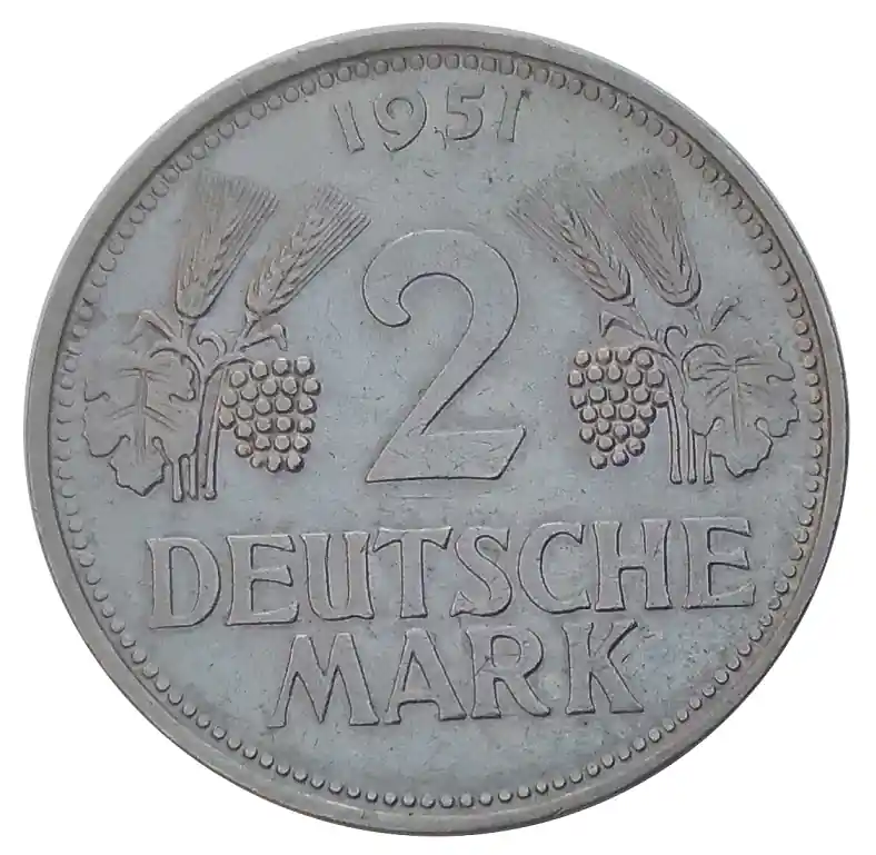 Start » Sale % » 2 DM Ähren und Trauben 1951 Prägebuchstabe D München Ab Werk