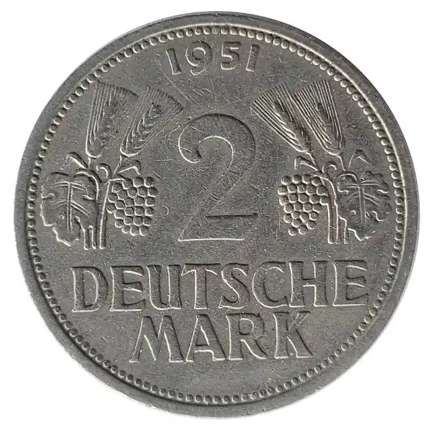 2 DM Ähren und Trauben 1951 Prägebuchstabe F Stuttgart