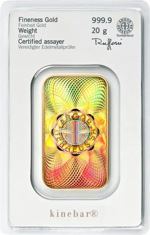 Herkunftsland:DeutschlandHersteller:HeraeusSerie:Heraeus KinebarFeingewicht:20 GrammFeinheit:999.9/1.000Blisterlänge:85,00 mmBlisterbreite:55,00 mmLänge:40,40 mm Breite:23,30 mmDicke:1,30 mmErhaltung:prägefrisch / NeuwareVerpackung:Blisterkarte mit Zertifikat und Seriennummer