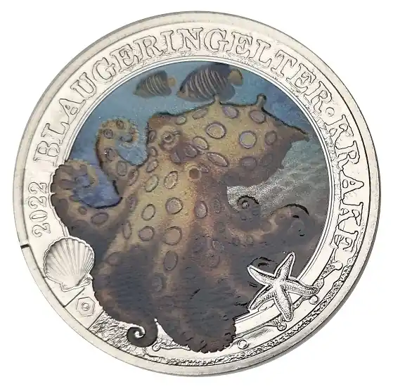 3 Euro Blaugeringelter Krake 2022 – Ozean Taler Serie aus Österreich – Leuchtende Meereswelten
