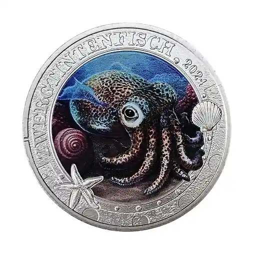 3 Euro Zwergtintenfisch 2024 – Ozean Taler Serie aus Österreich – Leuchtende Meereswelten