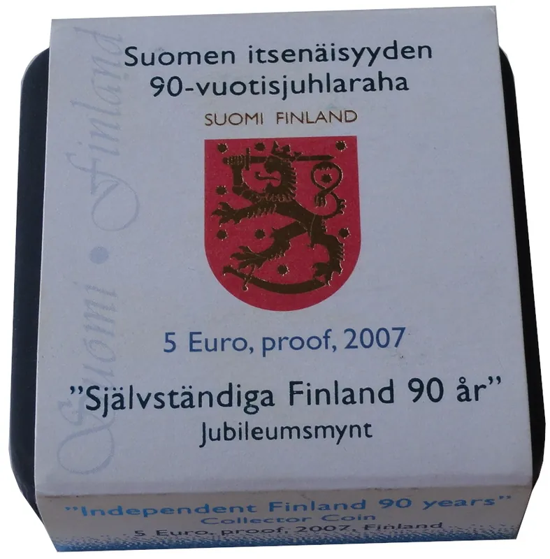5 Euro Finnland 2007 – 90 Jahre Selbstständiges Finnland Polierte Platte im Etui