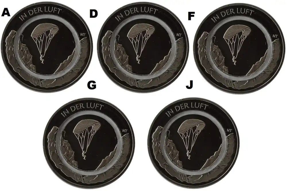 Start » Euromünzen » 5 x 10 Euro in der Luft 2019 ADFGJ Komplettsatz Stempelglanz mit farblosem Polymerring Günstig