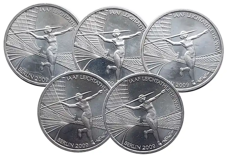 5 x 10 Euro Silber ADFGJ Leichtathletik WM Berlin 2009
