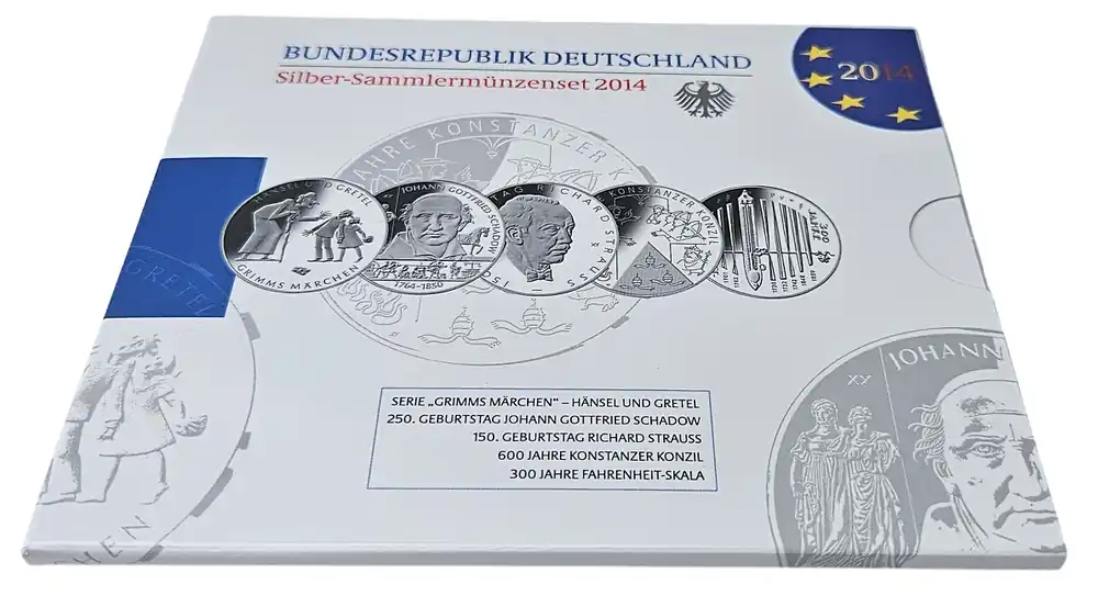 5 x 10 Euro Silber Gedenkmünzenset Deutschland 2014 Spiegelglanz im Folder