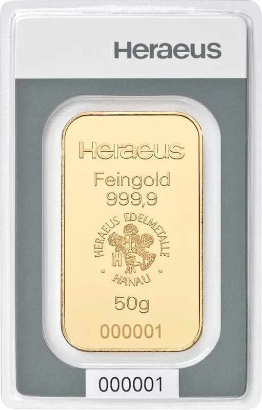 Herkunftsland:DeutschlandHersteller:HeraeusSerie:HeraeusFeingewicht:50 GrammFeinheit:999.9/1.000Blisterlänge:85,00 mmBlisterbreite:55,00 mmLänge:49,70 mm Breite:28,50 mmDicke:2,00 mmErhaltung:NeuwareVerpackung:Blisterkarte mit Zertifikat und Seriennummer