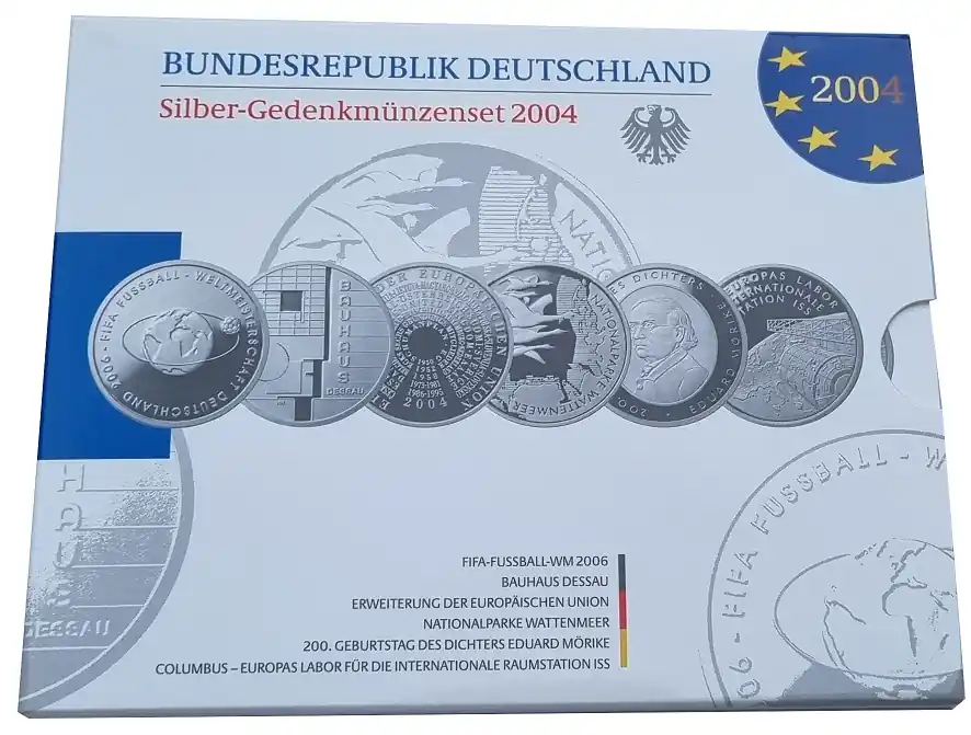 6 x 10 Euro Silber Gedenkmünzenset Deutschland 2004 Spiegelglanz im Folder