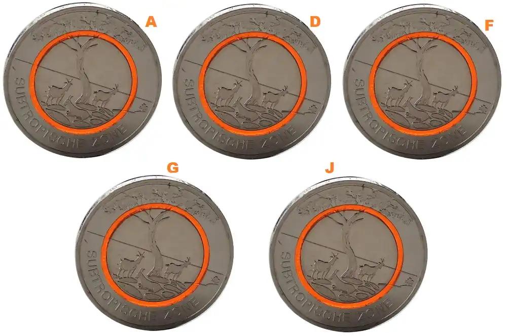BRD: 5 x 5 Euro Subtropische Zone 2018 ADFGJ Stempelglanz