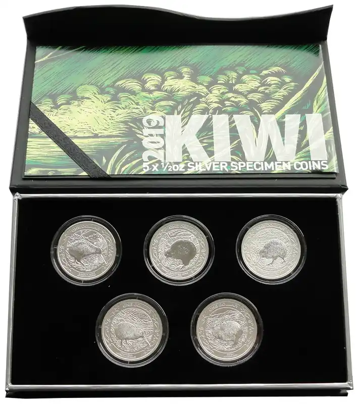 Neuseeland 5 x 1/2 Oz Silber Kiwi Specimen Set 2019 Proof – Like