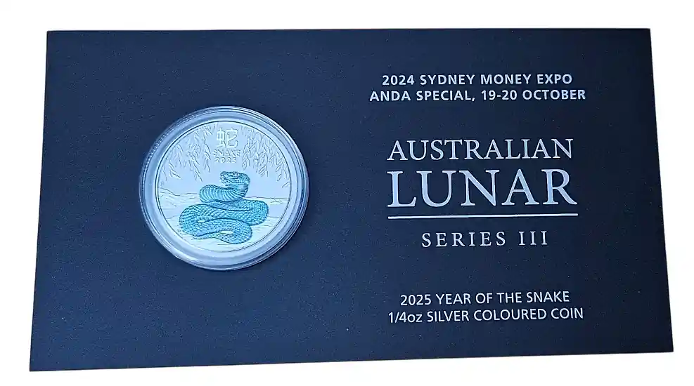 Australien 1/4 Oz Silber Lunar III Schlange Farbe 2025 – Sydney Money Expo Anda Special