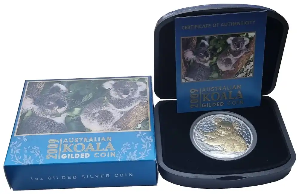Australien 1 Oz Silber Koala 2009 vergoldet Gilded im Etui