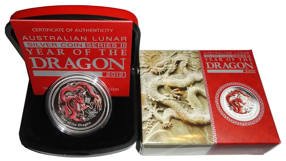 Australien 1 Oz Silber Lunar Drache II 2012 Farbe im Etui
