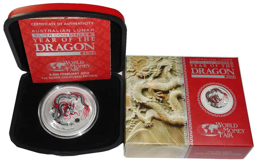 Australien 1 Oz Silber Lunar Drache II 2012 Farbe World Money Fair Aktuell