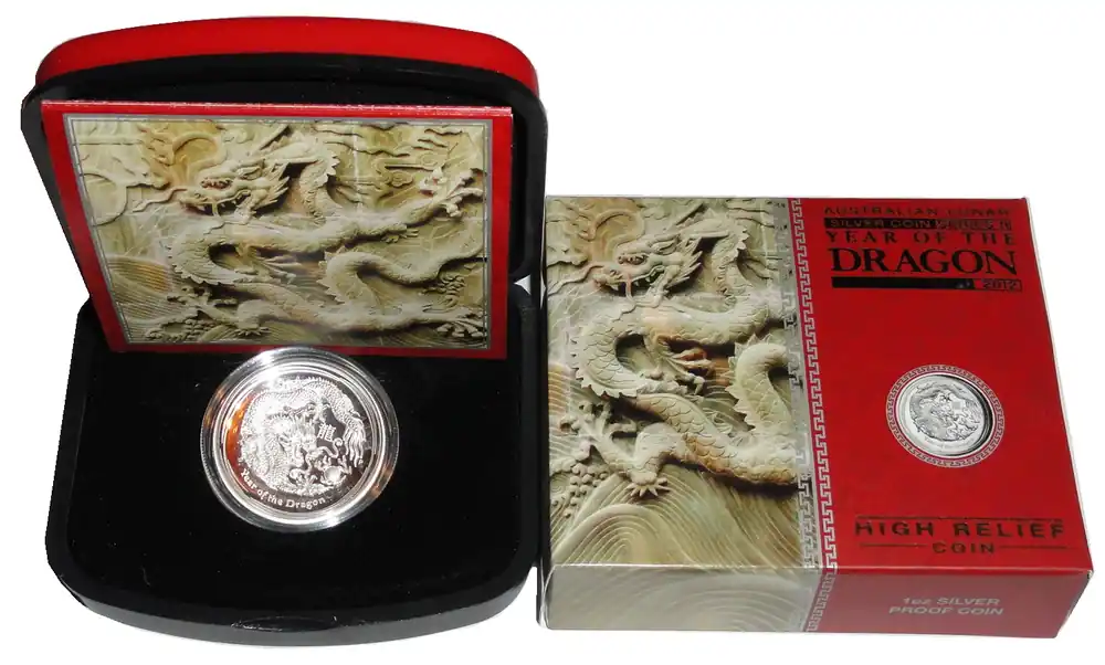 Australien 1 Oz Silber Lunar Drache II 2012 PP High Relief im Etui