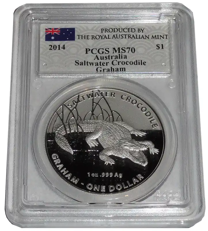 Australien 1 Oz Silber Salzwasser – Krokodil 2014 Graham PCGS MS – 70