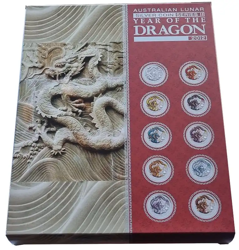 Australien 10 x 1 Oz Silber Drachen Set Farbe 2012 im Etui Highlight
