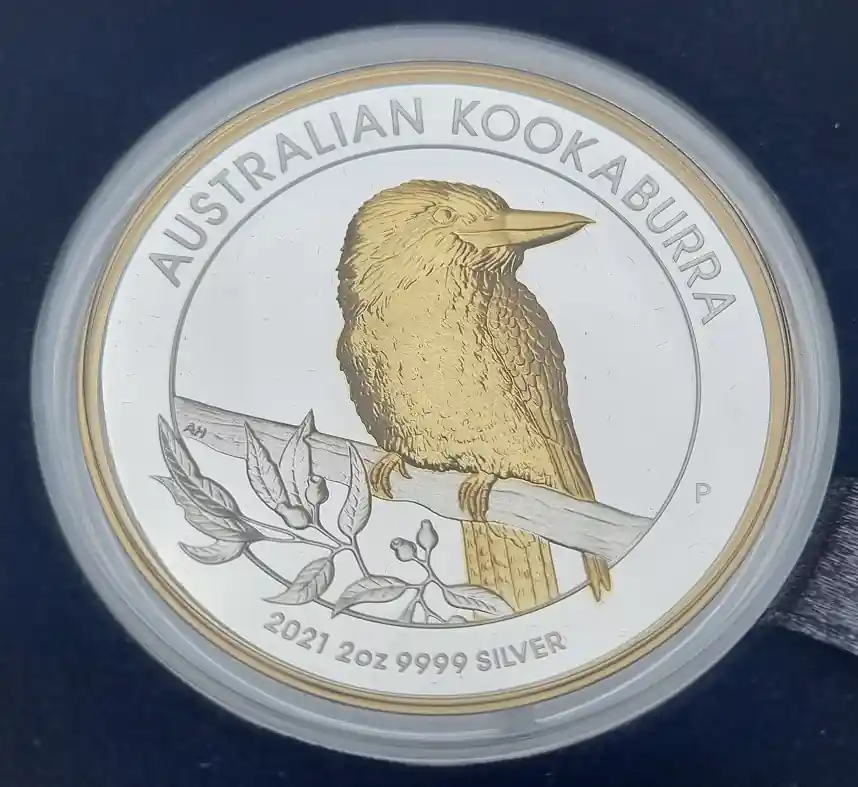 Australien 2 Oz Silber – Kookaburra 2021 High Relief teilvergoldet