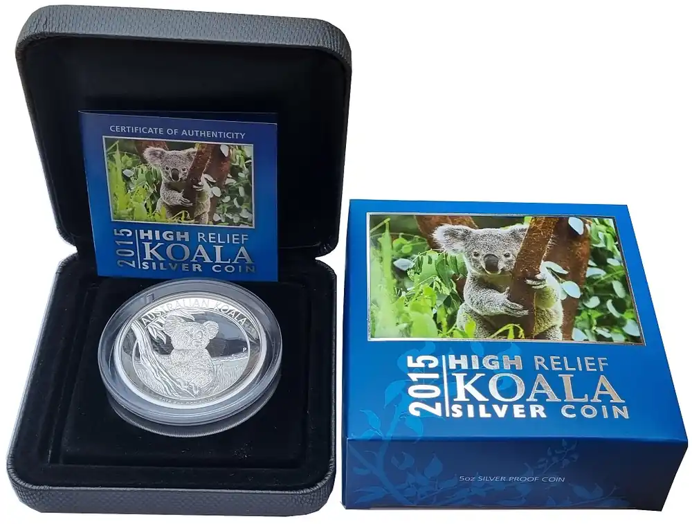 Australien 5 Oz Silber Koala 2015 High Relief Polierte Platte