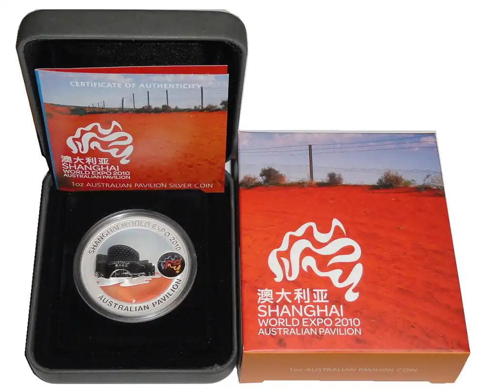 Start » Silbermünzen » Ausverkauf Australien 1 Oz Silber Shanghai World Expo Australien Pavillion 2010 PP im Etui