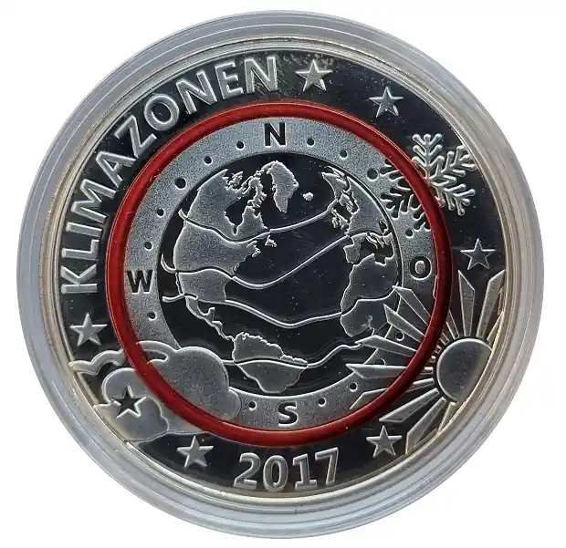 Start » Sale % » Ausverkauf Gedenkprägung Planet Erde mit Klimazonen 2017 Spiegelglanz in Münzkapsel