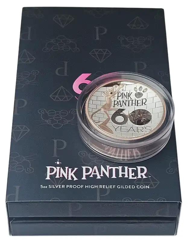 Start » Silbermünzen » Ausverkauf Tuvalu 5 Oz Silber Pink Panther 2024 High Relief Rose Gold ( Roségold )