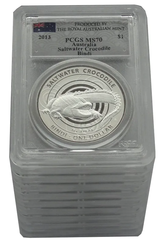 Australien 10 x 1 Oz Silber Salzwasser – Krokodil Bindi 2013 PCGS MS – 70