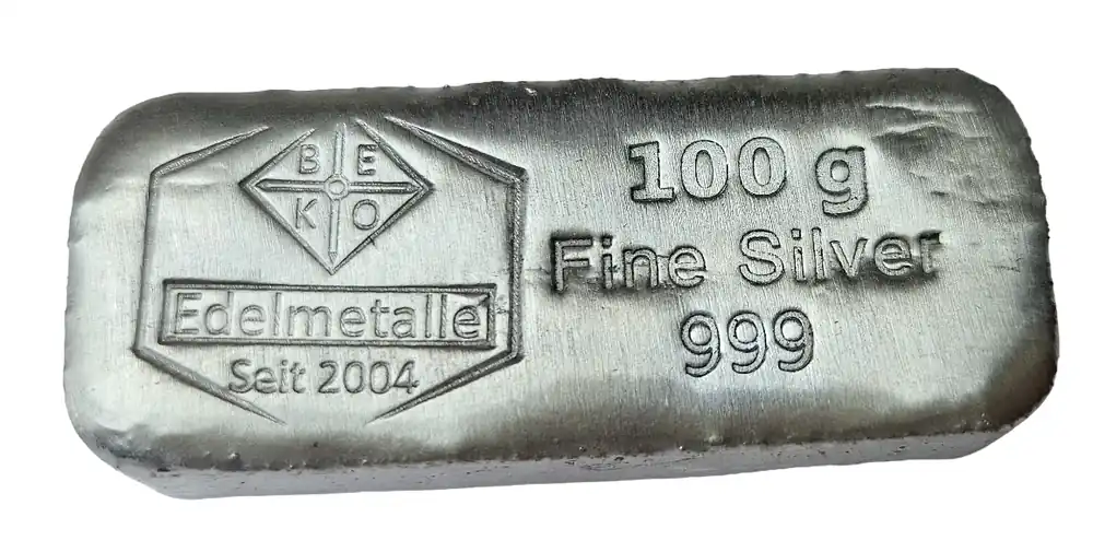 BeKo Edelmetalle 100 Gramm Silberbarren 999 Feinsilber (gegossen) Sammlerbarren Großhandel