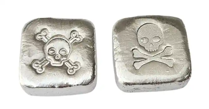 Start » Silberbarren » BeKo Edelmetalle 2 x 1 Oz Silberbarren 999 Feinsilber (gegossen) Totenköpfe Billig