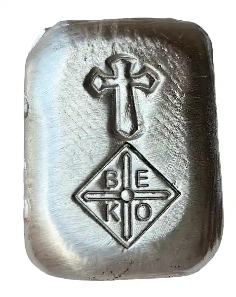 BeKo Edelmetalle 20 Gramm Silberbarren 999 Feinsilber (gegossen) Motiv: Kreuz 01/20