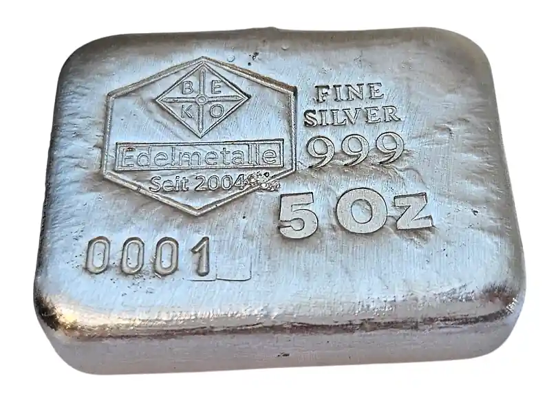 BeKo Edelmetalle 5 Oz Silberbarren 999 Feinsilber (gegossen) Sammlerbarren – Barrennummer 1