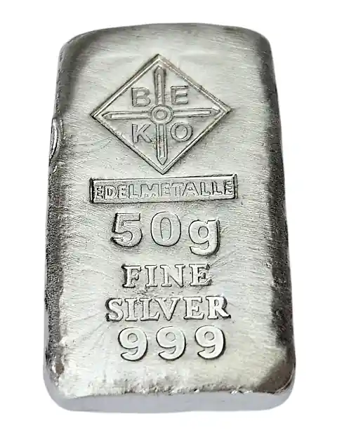 BeKo Edelmetalle 50 Gramm Silberbarren 999 Feinsilber Gussbarren – Anlagebarren