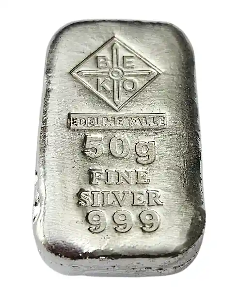 BeKo Edelmetalle 50 Gramm Silberbarren 999 Feinsilber Gussbarren – Sammlerbarren