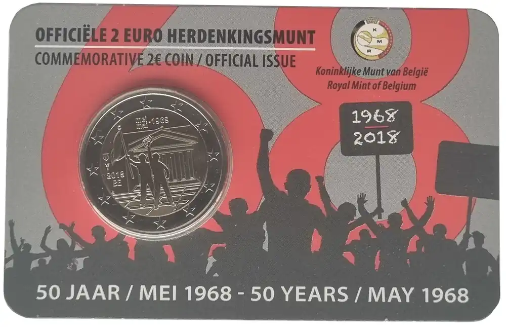Belgien 2 Euro Gedenkmünze 2018 – 50. Jahrestag der Studentenrevolte vom Mai 1968 in Coincard