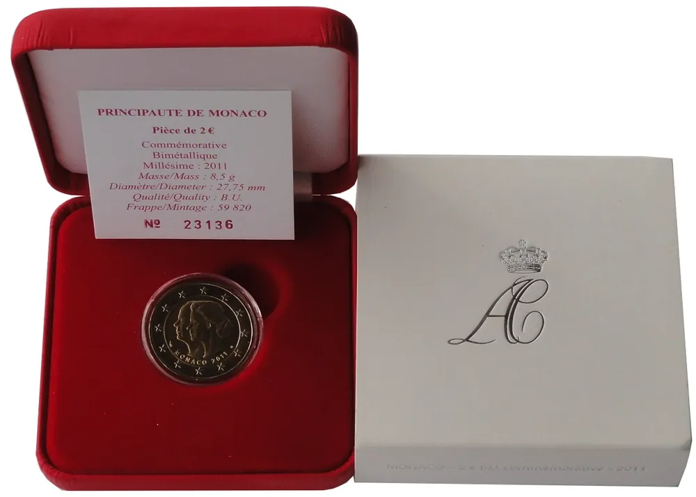 Monaco 2 Euro Gedenkmünze Hochzeit Fürst Albert II & Charlene 2011 BU im Etui