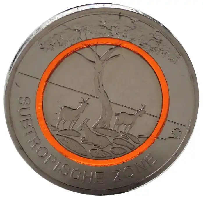 BRD: 5 Euro Bimetall Subtropische Zone D mit Polymer – Ring 2018
