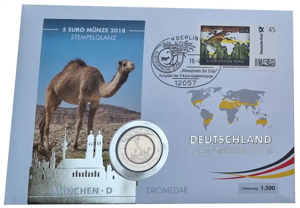 Start » Euromünzen » BRD: Numisbrief Dromeda – 5 Euro Bimetall Subtropische Zone D mit Polymer – Ring 2018 Heute Kaufen