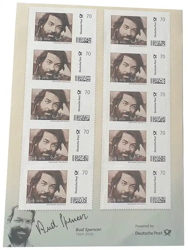 Start » Sonderangebot » Bud Spencer Briefmarken 10 x 70 Cent Briefmarkenbogen Limited Edition nur 10.000 Stück ! Bestpreis
