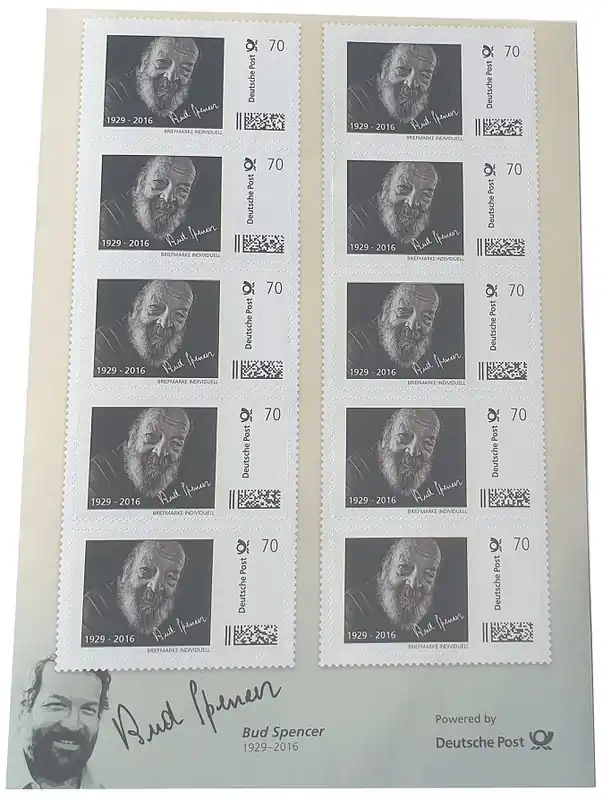 Start » Sonderangebot » Bud Spencer Briefmarken 10 x 70 Cent Briefmarkenbogen Limited Edition nur 10.000 Stück ! Gratis Versand